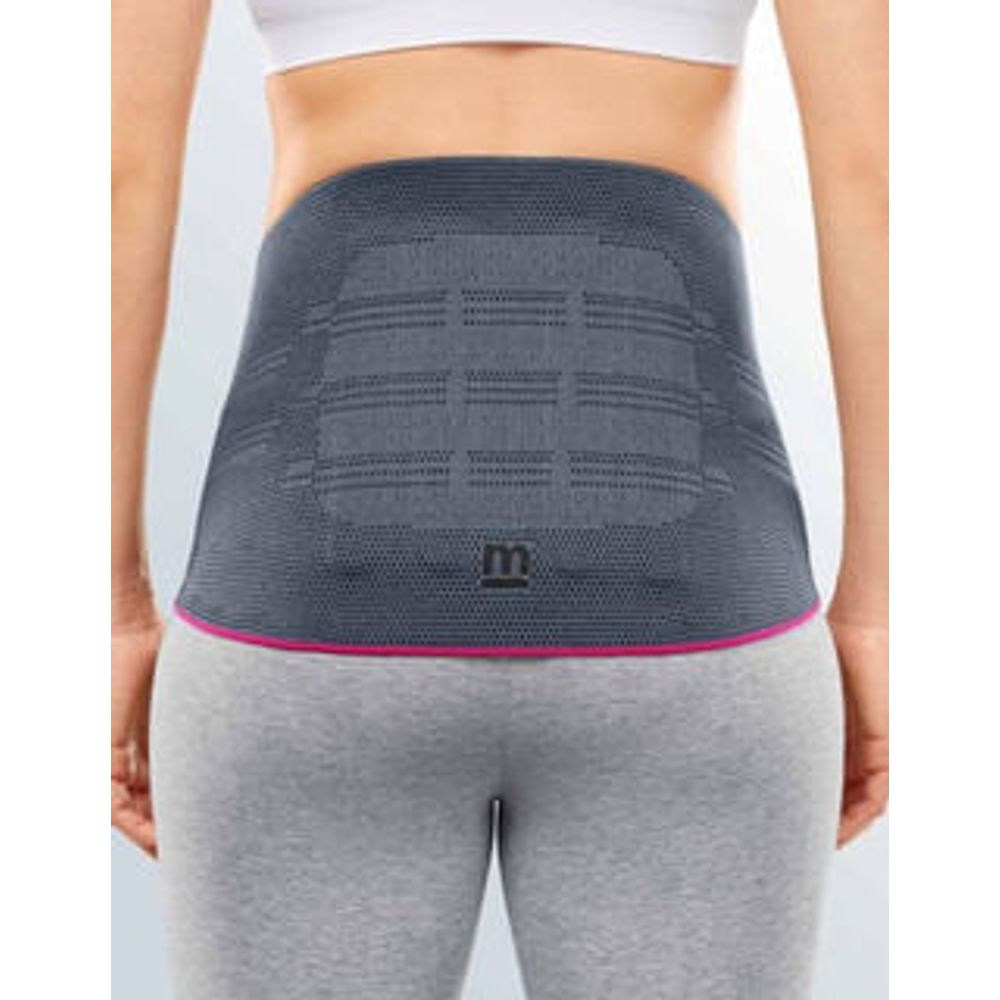 Vantagens do produto Estabilização da área da coluna lombar e da transição lombossacral por meio de 4 reforços dorsais de mola integrados Redução da lordose da coluna lombar por meio de compressão proprioceptiva na área abdominal Como funciona?/Mecanismo de ação Por favor, note que o ajuste inicial deve ser supervisionado por um profissional de saúde. Com a combinação da malha de compressão e das hastes traseiras integrados, Lumbamed basic estabiliza a área da coluna lombar e a passagem para a pélvis, sem prejudicar a força muscular. As forças estáticas na coluna vertebral são melhoradas e o esforço exercido sobre os segmentos afetados é reduzido. Isso alivia a dor. Os apoios conseguem o maior efeito durante a atividade física. Em princípio, o apoio pode ser usado durante todo o dia. Porém, Isto depende do conforto que o usuário sente ao usar o apoio. Ele deve ser retirado durante longos períodos mais longos (p. ex., se ficar sentado muito tempo, ou em uma viagem longa de carro, durante o sono). Se você sentir dor excessiva ou desconforto durante o uso, retire o produto imediatamente e consulte um médico. Instruções para vestir/ajustar A etiqueta no lado direito dentro do fecho informa sobre como colocar o apoio. Primeiro, deslize para dentro da pulseira interna do lado esquerdo do fecho. Enrole a ligadura em torno do corpo e, em seguida, deslize para dentro da pulseira externa do lado direito. Puxe os dois lados de fecho um sobre o outro e, em seguida, prenda-os tão centralmente quanto possível com o velcro. A ligadura está aplicada corretamente se a extremidade inferior do fecho ficar localizada imediatamente acima da púbis. A guia do dedo mindinho, na borda do lado direito do fecho, irá ajudá-lo a retirar a ligadura novamente. O tecido de malha Clima Comfort consegue a sua melhor atividade de respiração quando a ligadura é usada diretamente sobre a pele. Componentes do material Poliamida, poliéster, elastano, viscose Instruções de lavagem Os fechos de velcro devem ser fechados para lavagem. Amaciador, gorduras, óleos e pomadas podem atacar o material e prejudicar o efeito Clima Comfort. Resíduos de sabão podem causar irritação da pele e desgaste do material. Lave o produto à mão, de preferência usando um detergente medi clean, ou no programa para roupa delicada, a 30°C, usando um detergente suave sem amaciadores. Não use lixívia. Deixe secar naturalmente. Não passe a ferro. Não limpe a seco. Indicações Dor não específica na área da coluna lombar Dor relacionada com desgaste na região da coluna lombar Irritação da articulação sacroilíaca Esforço excessivo exercido na passagem da coluna lombar para a pélvis Debilidade ou desequilíbrio dos músculos do tronco (costas ou abdômen) Afrouxamento da sínfise púbica Contraindicações absolutas Nenhum