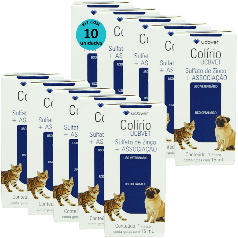 Colírio UCBVET 15ml Para Cães Kit Com 10 Unidades