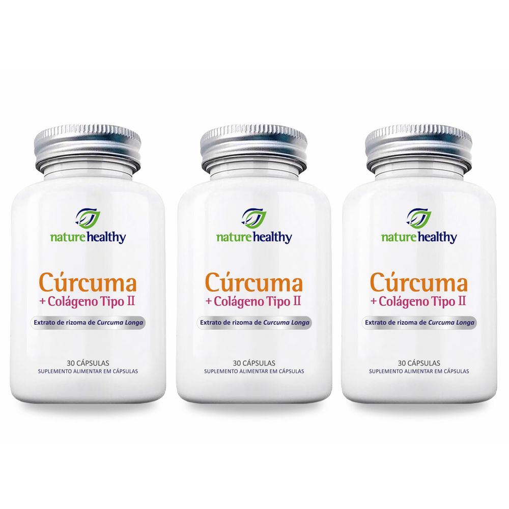 COMBO c/ 3 - EXTRATO DE CÚRCUMA LONGA 130MG + COLÁGENO TIPO II 40MG c/ 30 NATURE HEALTHY