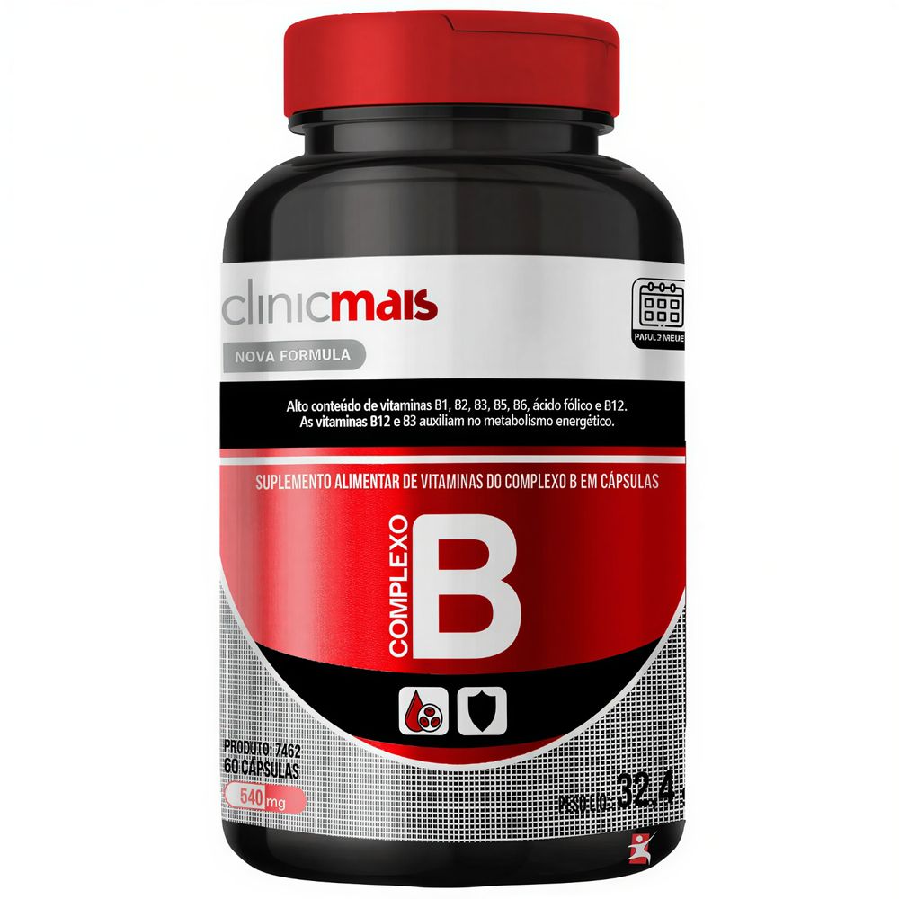 DESCRIÇÃOVITAMINAS DO COMPLEXO B são essenciais para o bom funcionamento do metabolismo energético, sistema imunológico e manutenção de uma pele saudável. A vitamina B12 e B3 auxiliam no metabolismo de carboidratos, proteínas e gorduras, enquanto o ácido fólico (B9) ajuda na síntese de aminoácidos. Indicado para quem busca mais energia e bem-estar, em uma fórmula prática e fácil de consumir.As vitaminas B12 e B3 auxiliam no metabolismo energético. As vitaminas B1 e B6 auxiliam no metabolismo de proteínas, carboidratos e gorduras. As vitaminas B2 e B12 auxiliam na formação de células vermelhas do sangue e no funcionamento do sistema imune. A vitamina B2 é um antioxidante que auxilia na proteção dos danos causados pelos radicais livres e contribui para manutenção da pele e de mucosas. O ácido fólico (vitamina B9) auxilia na síntese de aminoácidos. BENEFÍCIOS• A suplementação do complexo B oferece uma gama de benefícios à saúde. • Composto por vitaminas B1, B2, B3, B5, B6, B7, B9 e B12, esse complexo desempenha um papel crucial no metabolismo energético. • Conjunto de vitaminas com importante ação no metabolismo celular essencial para uma pele saudável e crescimento do cabelo e das unhas;• As vitaminas do complexo B são responsáveis pela manutenção da saúde emocional e mental;• Ajuda na produção de energia para o corpo. RECOMENDAÇÕES DE USOINDICAÇÃO: Indivíduos com idade = 19 anos.SUGESTÃO DE CONSUMO: Ingerir 1 cápsula ao dia. TABELA NUTRICIONAL - COMPOSIÇÃO - RECOMENDAÇÕES & CUIDADOSAnexo nas imagens do anúncio.
