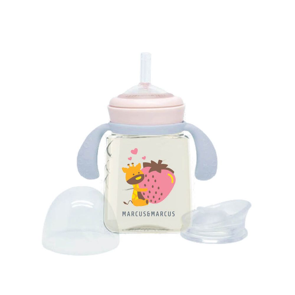 Copo De Transição Com Bico E Canudo Em Silicone 180Ml Rosa - Marcus & Marcus