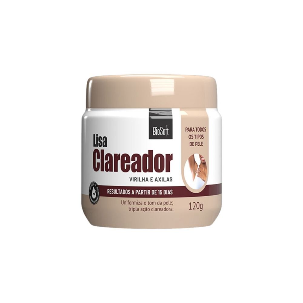 Transforme sua autoestima e ilumine sua beleza com o Creme Clareador Lisa Bio Soft 120g!Você sabia que o uso de lâminas, roupas apertadas, alergia e fricção na pele são algumas das inúmeras causas de aparecimento de manchas escuras no corpo? Se você está sofrendo com manchas escuras na região da virilha, axilas, cotovelo, joelhos, entre coxas e no corpo em geral, você precisa conhecer o Lisa Clareador da Bio Soft.O Creme Clareador Íntimo Lisa Bio Soft é indicado para o uso nas áreas íntimas e corporais que apresentam hiperpigmentação pós- inflamatória onde a pele acaba produzindo mais melanina e escurece a região.O ativo principal do Clareador Íntimo Lisa Bio Soft é extraído do Gengibre Chinês, matéria prima que possui tripla ação clareadora, uma vez que atua em três fenômenos associados à pigmentação da pele: Formação do melanossomo, síntese de melanina e o transporte do melanossomo. O uso contínuo e correto conforme a orientação de uso, oferece um clareamento gradual e homogeneização da tonalidade da pele. Além disso, reduz a aparência opaca e escura da região aplicada deixando a pele luminosa e uniforme. Lisa Clareador ajuda a hidratar a região e a prevenir a formação de novas manchas.Um tratamento que pode ser feito em casa, diariamente, de forma simples e prática.ATENÇÃO: Produto destinado a pele de regiões secas. Não utilize na região Interna Íntima ou de mucosa, por serem regiões mais sensíveis do corpo.PROCESSO ANVISA: 25351.455102/2021-42 AFE 208433-4Perguntas Frequentes:Posso usar durante a gravidez?Para mulheres grávidas indicamos sempre a consulta com o médico antes do uso.Em quanto tempo o produto começa a fazer efeito?O efeito do clareador é progressivo por isso é muito importante que siga exatamente o modo de uso. Seguindo o tratamento certinho todo dia, em poucas semanas o resultado já começa aparecer. Modo se usar: Indicado para uso na virilha, axilas e áreas com hiperpigmentação como cotovelos e joelhos. Utilizar 1x ao dia, preferencialmente após o banho, no período da noite. Com a área limpa e seca, aplique uma pequena quantidade do produto espalhando bem para facilitar a absorção.Evite exposição solar nas regiões durante o uso.Observação:Segundo o fabricante o produto está sujeito a variação de aspecto e cor, por conter uréia e ativos naturais em sua formulação sem que haja alteração da qualidade.Precauções:Em caso de irritação suspender o uso. Uso Externo. Uso Adulto. Manter fora do alcance de crianças. Não utilizar sobre pele lesionada. Para uso durante a gravidez consulte o médico.-----------------------Principais Tags de Pesquisa:clareador de virilha, clarear virilha, clareamento de virilha, creme para clarear virilha, clarear virilha escura, clareador de axilas, clarear axila, clarear entre as pernas, como clarear as coxas, manchas na coxa, como tirar manchas escuras entre as pernas e virilha, clarear joelhos, como clarear o joelho, como clarear joelhos e cotovelos, clareador de cotovelo, creme para clarear cotovelo, hidratante clareador corporal, clareador íntimo, creme clareador intimo, Tratamento para clarear a pele da virilha, Produtos para clarear virilha, clareador de manchas escuras, clareamento de pele íntim, creme clareador de pele