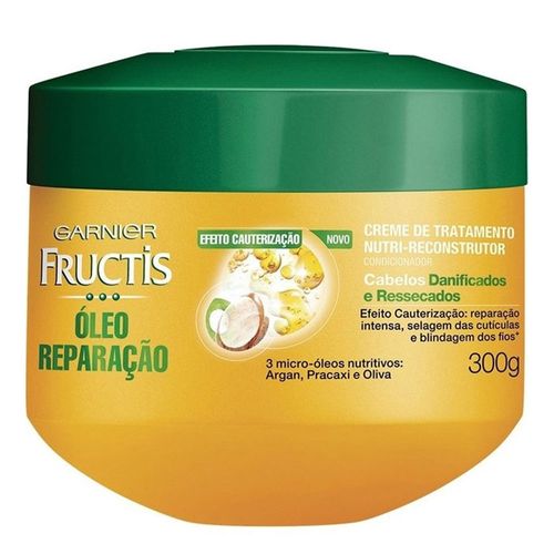 O Creme de Tratamento Fructis Óleo Reparação é indicado para os cabelos ressecados e danificados. O produto possui efeito cauterização, que reparam e selam as cutículas, proporcionando fios blindados, saudáveis e muito mais bonitos. A embalagem contém 300g.