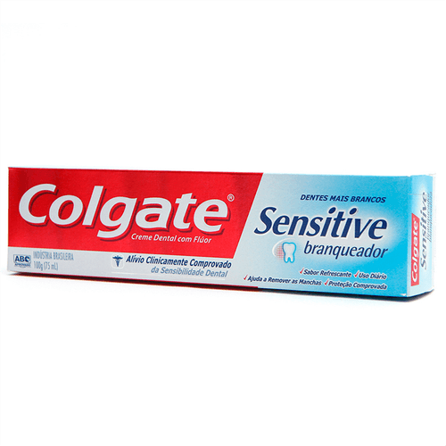 O Creme Dental Colgate Sensitive Branqueador é indicado para o cuidado dos dentes sensíveis. O produto promove o alívio da sensibilidade, além de remover manchas e combater cáries. Os dentes ficam mais brancos, saudáveis e bonitos. A embalagem contém 100g.