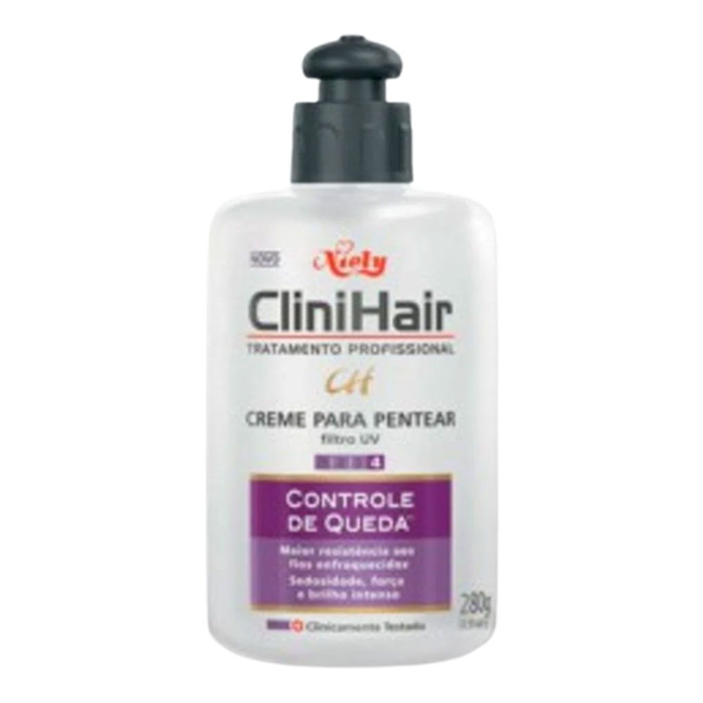 O Creme para Pentear Niely CliniHair Controle De Queda é indicado para cuidar de cabelos fracos e quebradiços. Sua fórmula fortalece os fios, diminuindo a queda com apenas 2 semanas de uso. Os cabelos ficam mais resistentes, bonitos e saudáveis. A embalagem contém 280g.