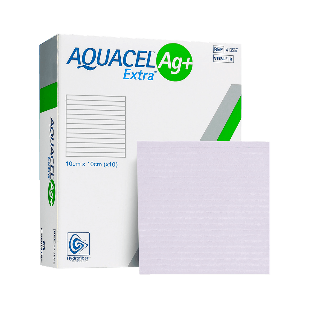 O Curativo Aquacel AG+ Extra 10x10cm - ConvaTec é um curativo primário, estéril, não aderente e macio, em forma de placa. Absorve grandes quantidades de exsudato e é composto por duas poderosas tecnologias: A Tecnologia Ag+, uma formulação única anti-biofilme contendo prata e a Tecnologia Hydrofiber, que ajuda a criar o ambiente ideal para cicatrização.