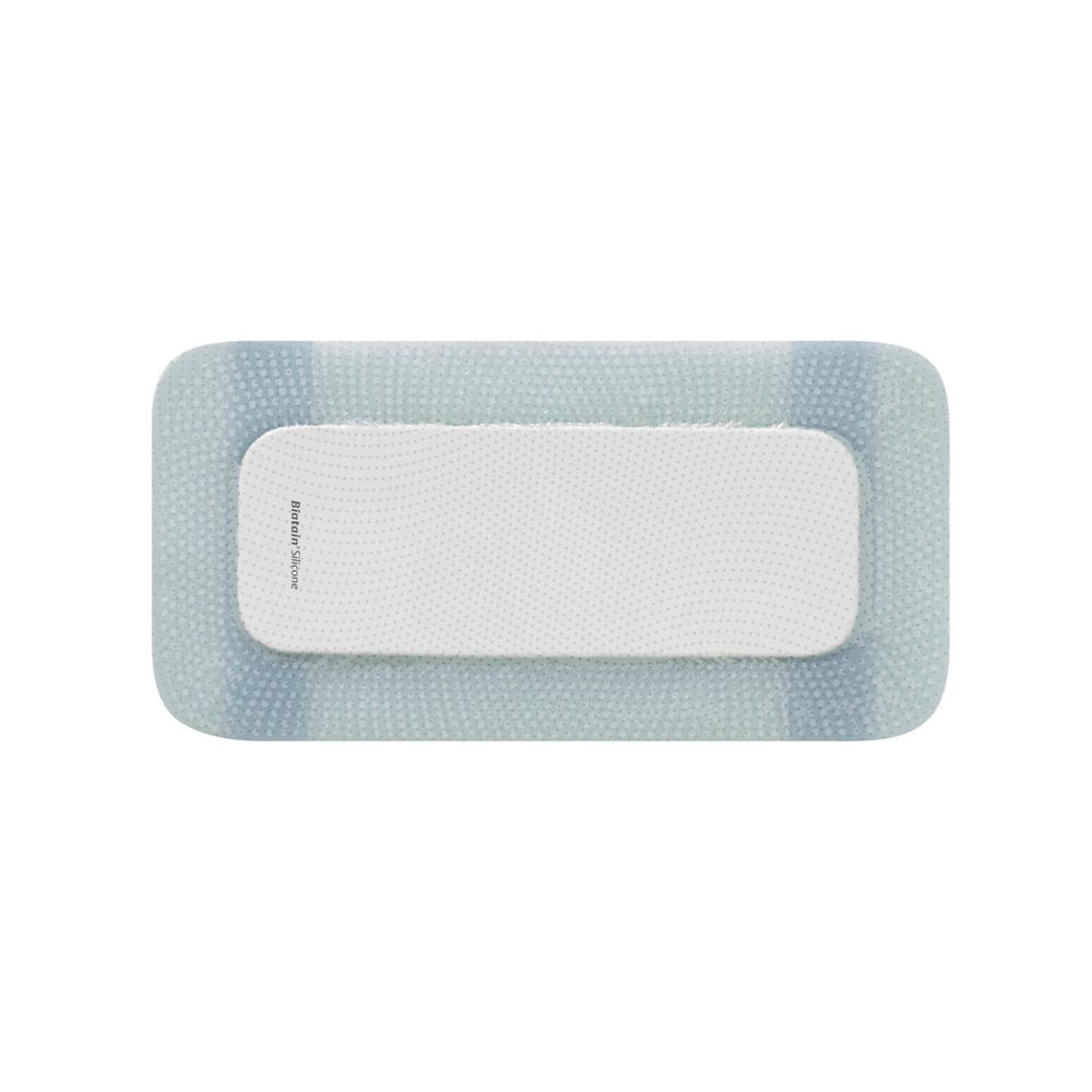 Curativo Espuma e Silicone 10x20cm - Biatain Silicone - Coloplast 33400 é um curativo de espuma absorvente macio e flexível, com uma camada de silicone suave e com a exclusiva tecnologia 3DFit®.