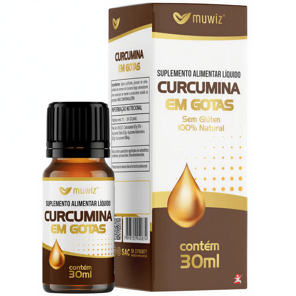 CURCUMINA 100% NATURAL CURCUMA LONGA EM GOTAS 30 ML - MUWIZ