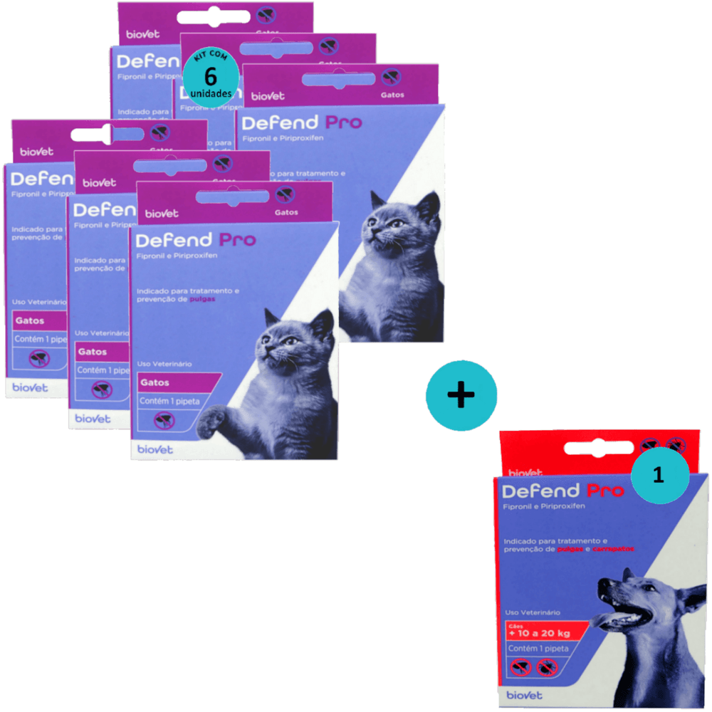 Defend Pro Gatos Kit C/ 6 + Defend Pro Cães (11 - 20kg) C/ 1