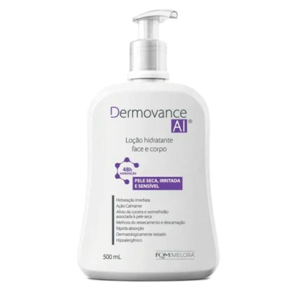 A Loção Hidratante Dermovance AI Corpo e Rosto é indicado para peles seca, irritada e sensível. - Hidratação imediata - Ação Calmante - Alívio da Coceira e Vermelhidão - Melhora do Ressecamento e Descamação - Rápida Absorção - Dermatológicamente Testado - Hipoalergênico
