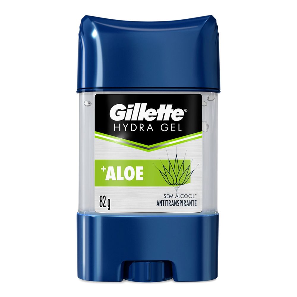 O Gillette Hydra Gel Aloe vem em embalagem de 82g, prática para usar em casa ou levar na mochila. Produto da Procter & Gamble, marca reconhecida mundialmente pelos cuidados masculinos.