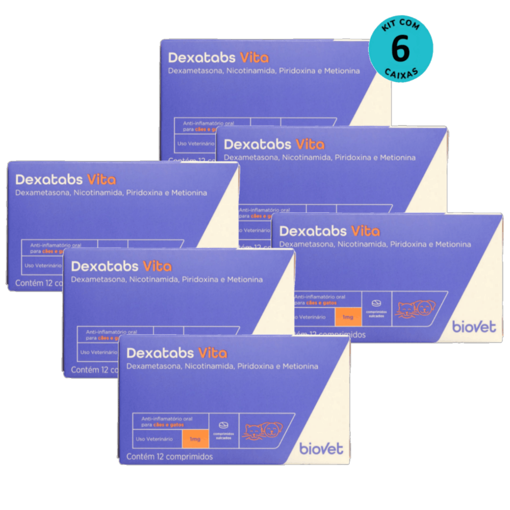 Dexatabs Vita Para Cães E Gatos 1mg Com 12 Comp. Kit C/ 6 cx