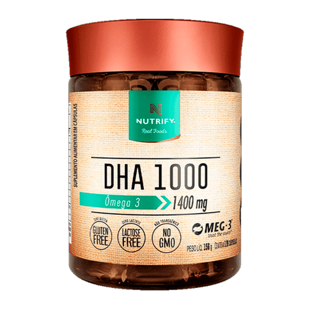 Entre alta concentração e fonte sustentável, fique com os dois.Os benefícios da suplementação de ômega 3 são amplamente respaldados pela ciência. DHA 1000 NUTRIFY é ultraconcentrado em DHA, o ácido graxo predominante no cérebro. O óleo de peixe utilizado em sua produção é o MEG-3®, originado de pescas regulamentadas que protegem as reservas naturais, garantindo alta qualidade, concentração, pureza e sustentabilidade. Além da tecnologia inovadora de microencapsulação do MEG-3® que reduz significativamente o retrogosto de peixe que algumas pessoas sentem ao suplementar ômega 3. Mais conforto e segurança para você.