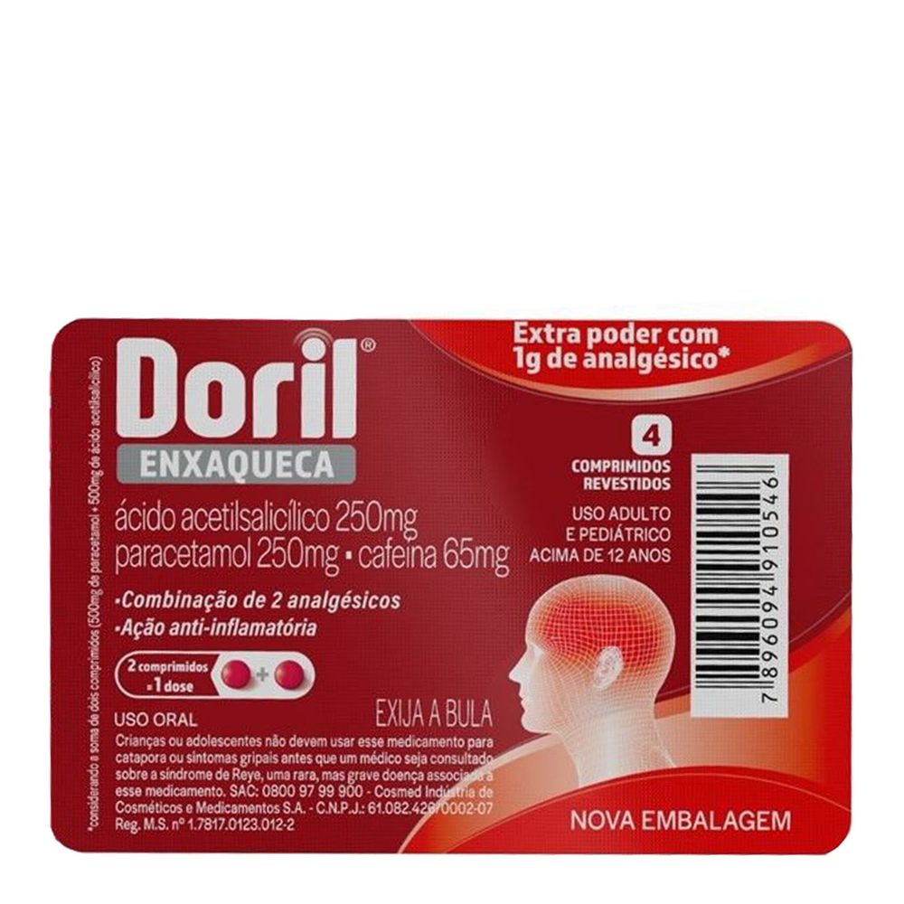 Analgésico e Antitérmico Doril Enxaqueca 250mg + 250mg + 65mg 4 Comprimidos
