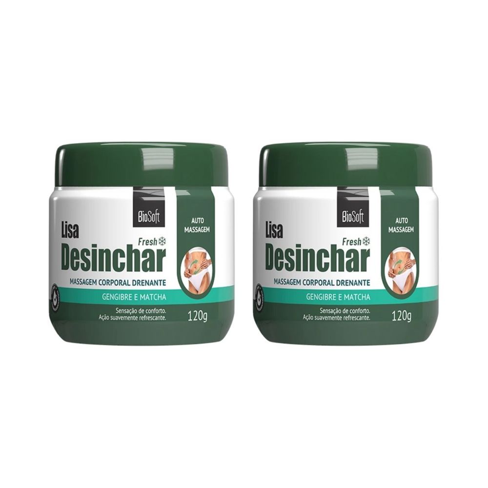 Descubra o segredo para uma sensação de alívio e bem-estar com o incrível creme de auto massagem para desinchar o corpo Lisa Desinchar Fresh da Bio Soft! Se você está procurando uma solução eficaz para reduzir o inchaço e a retenção de líquidos do seu corpo diretamente da sua casa, esse creme é perfeito para você.Lisa Desinchar é formulado com extratos naturais de Gengibre e Matcha, que foram selecionados para promover a drenagem dos líquidos retidos melhorando o metabolismo celular e microcirculação. Sua fórmula exclusiva penetra profundamente na pele, agindo diretamente nas áreas problemáticas, como pernas, coxas, braços e abdômen.Estudo de eficácia:O creme Lisa Desinchar associado à automassagem corporal e a prática de atividades físicas, apresentou 81% de alívio do cansaço físico e redução do inchaço causado pelo acúmulo de líquidos corporais.Além de ajudar a desinchar o corpo, a massagem proporciona uma sensação relaxante e refrescante com sua fórmula " Fresh".Então não perca mais tempo procurando por soluções! Sua jornada para uma drenagem corporal saudável e revitalizante começa com Lisa Desinchar!.Principais Benefícios:Ajuda reduzir o inchaço e a retenção de líquidos 81% de redução se aliado a massagem e exercício físicoFórmula "Fresh" com efeito refrescantePrincipais AtivosMatcha: Um tipo de chá verde muito utilizado no Japão conhecido por contribuir para diminuição da retenção de líquidos presentes no corpo, ajudando a eliminar o inchaço.Gengibre: Raiz conhecida por suas propriedades antiinflamatórias e também considerado um termogênico natural. Auxilia na redução da retenção líquida.ANVISAProcesso: 25351.487928/2022-51 Aut/MS 2.01236.1Modo de usar:Com a pele limpa e seca, aplique o produto diariamente em todo o corpo, principalmente nas regiões afetadas pela retenção hídrica, massageando suavemente por um minuto.Ingredientes:Aqua(Água), Cetearyl Alcohol(Álcool Cetoestearílico), Camellia Sinensis Leaf Extract(Extrato Da Folha De Camellia Sinensis), Cetyl Alcohol(Álcool Cetílico), Stearic Acid(Ácido Esteárico), BHT(Butil-Hidroxitolueno), Zingiber Officinale Root Extract(Extrato Da Raiz De Zingiber Officinale),Alcohol( Álcool Etílico), EDTA(Ácido Edético),Tetrasodium EDTA (Edetato De Sódio), Allantoin(Alantoína), Phenoxyethanol( Fenoxietanol), Methylparaben(Metilparabeno), Propylparaben(Propilparabeno),Ethylparaben(Etilparabeno), Butylparaben(Butilparabeno), Aminomethyl Propanol(Aminometilpropanol), Glyceryl Stearate( Monoestearato De Glicerila), Cyclopentasiloxane(Decametilciclopentasiloxano), Dimethicone(Dimeticona), Menthol(Mentol),Propylene Glycol(Propilenoglicol),Glycerin(Glicerol), Prunus Amygdalus Dulcis Oil( Óleo De Amêndoas),Paraffinum Liquidum(Petrolato Líquido).Precauções:Uso Externo. Uso Adulto. Mantenha fora do alcance de crianças. Em caso de irritação suspenda o uso e se necessário consulte o médico. Não utilizar sobre a pele lesionada ou irritada. Evitar contato com os olhos. Para uso durante a gravidez consulte um médico. ----------------------------Principais Tags de Pesquisa: creme para drenagem, creme drenagem linfática, creme para drenagem linfática, produtos para drenagem linfática, creme de drenagem, melhor creme drenagem linfática, creme para fazer drenagem na barriga, creme para fazer drenagem, cremes para drenagem linfatica manual, creme para retenção de liquido, creme retenção de liquidos, desinchar o corpo, tirar inchaço do corpo