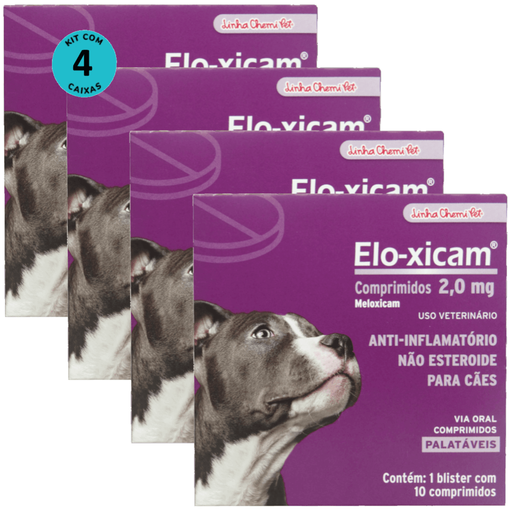 Elo-xicam 2,0mg Com 10 Comprimidos Para Cães Chemitec Kit Com 4