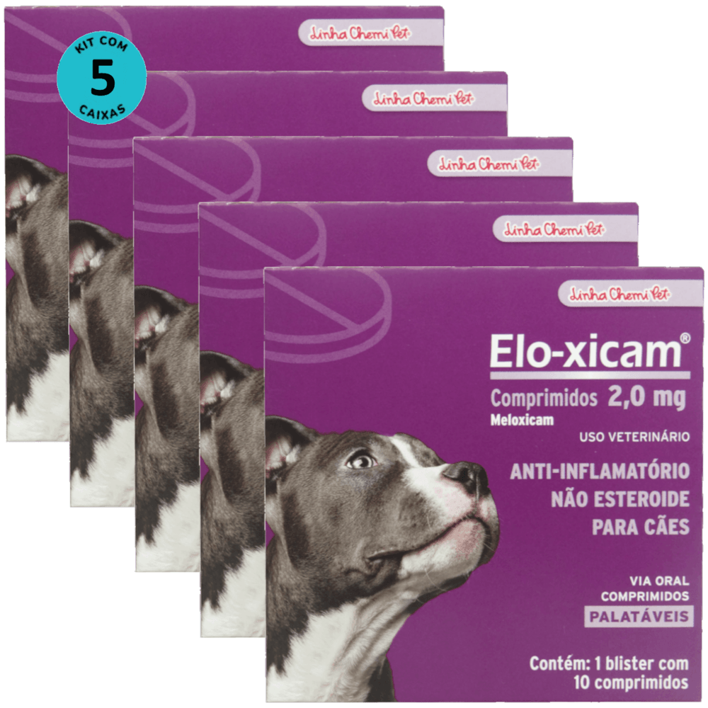 Elo-xicam 2,0mg Com 10 Comprimidos Para Cães Chemitec Kit Com 5