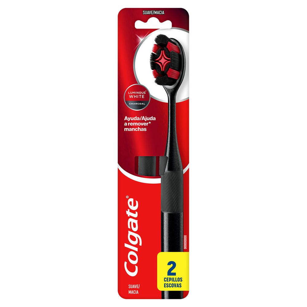 Escova de Dente Colgate Luminous White Charcoal Macia 2 Unidades
