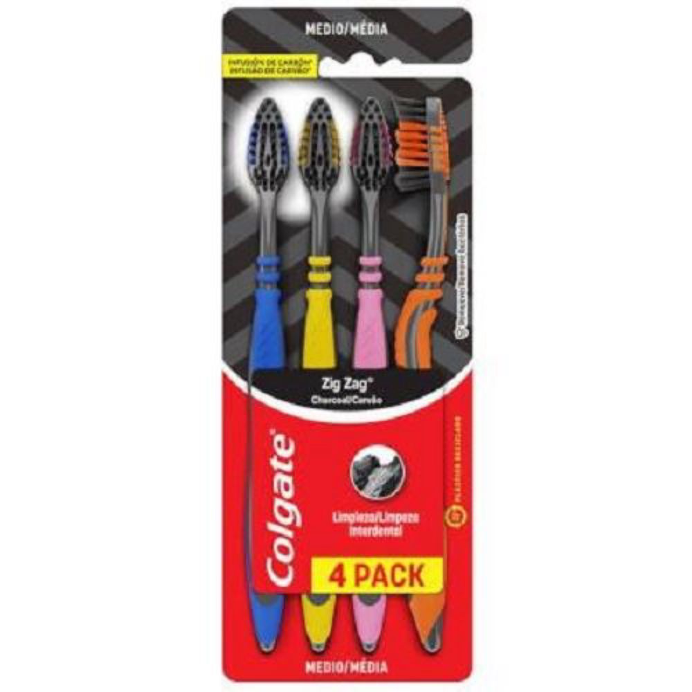 Escova Dental Colgate Zig Zag Carvão 16 FHS com 4 Und