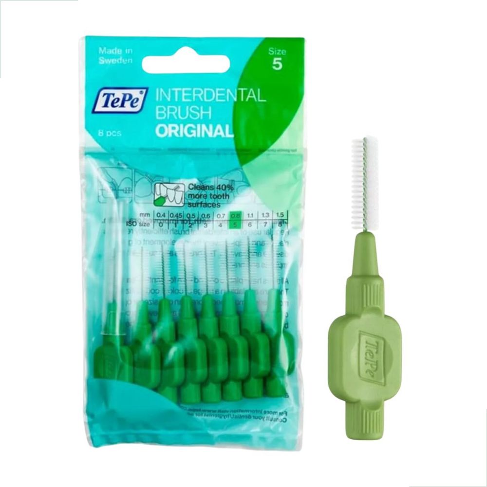 Escova Interdental 0.80mm Verde TePe Limpeza Eficiente Pontes Fixas Coroas Cuidados Orais Avançados Higiene Prática Comp