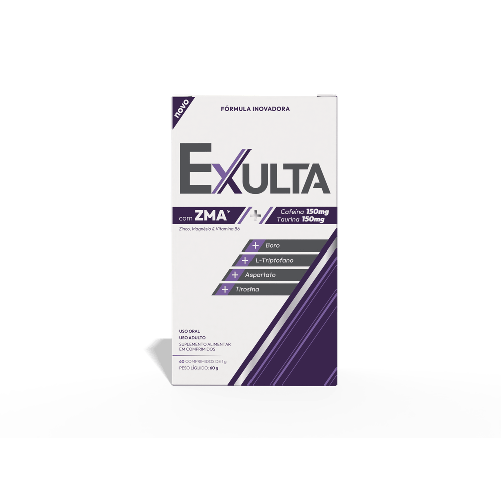 EXULTA é um suplemento inovador, formulado com ZMA e associados, desenvolvidopara elevar sua energia, disposição e foco. Ideal para quem busca melhorar odesempenho físico e mental, EXULTA combate a fadiga e a exaustão, revitaliza alibido e aprimora o foco e a concentração, sem efeitos colaterais indesejados. Seja notrabalho, nos estudos ou na academia, EXULTA proporciona a vitalidade necessáriapara você alcançar seus objetivos e viver sua melhor versão.