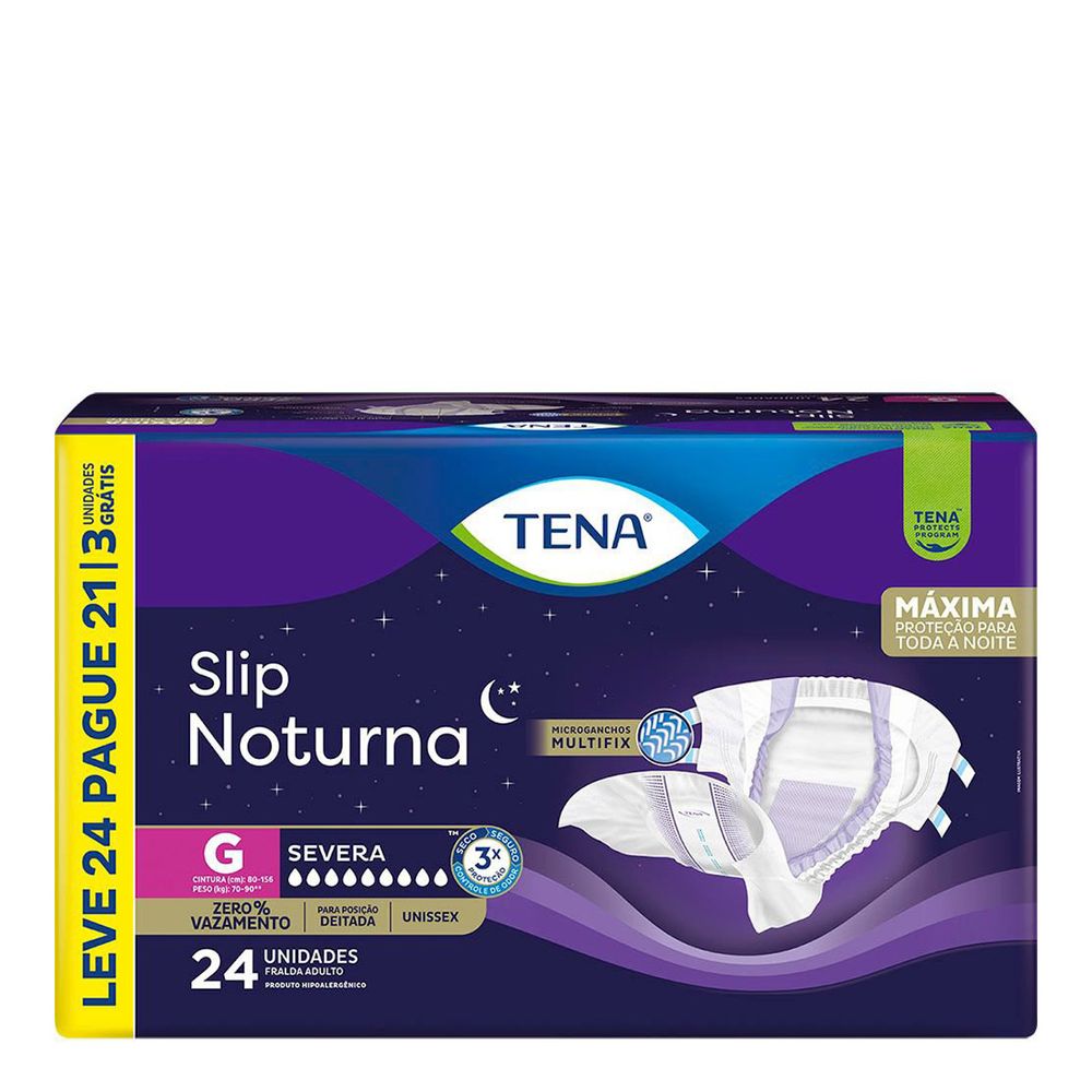 Fralda Adulto Tena Slip Noturna G 70 A 90kg 24 Unidades