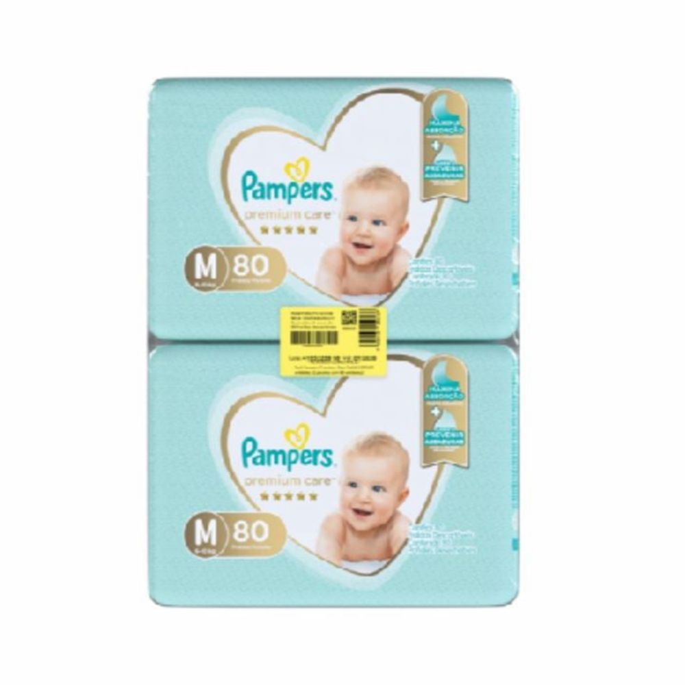 Fralda Descartável Infantil Pampers Premium Care M 6 A 10Kg Pacote 2 Unidades 80 Fraldas Cada Pacote