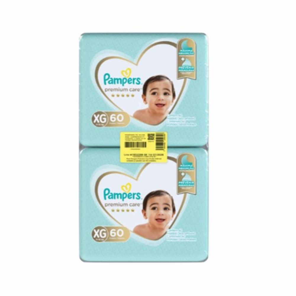 Fralda Descartável Infantil Pampers Premium Care Xg 11 A 15Kg Pacote 2 Unidades 60 Fraldas Cada Pacote