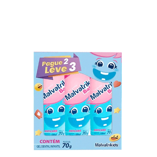 Kit Pasta de Dente Gel Infantil Malvatrikids Baby Tutti Frutti 3 Unidades de 70g