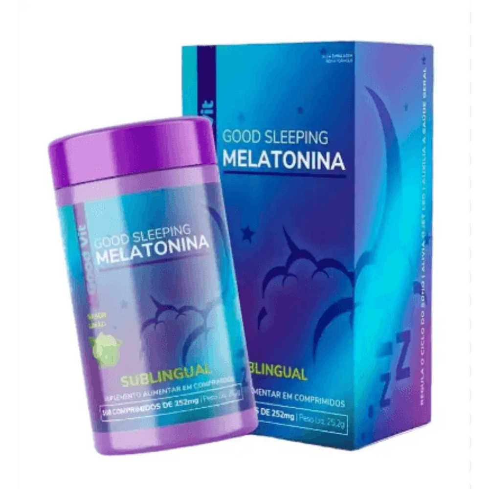 O Good Sleeping Melatonina da Good Vit é um suplemento alimentar em comprimidos sublinguais, desenvolvido para auxiliar quem sofre com dificuldade para dormir, insônia ou alterações no ciclo do sono, como jet lag. Com rápida absorção pela mucosa bucal, proporciona efeito mais eficiente e imediato no organismo, ideal para quem deseja adormecer com mais facilidade e ter um sono profundo e reparador.Cada comprimido contém uma dose eficaz de melatonina, hormônio naturalmente produzido pelo corpo, responsável por regular o ciclo sono-vigília. A fórmula é livre de glúten, açúcares e calorias, sendo segura para uso diário e adequada para dietas restritivas.O uso diário pode contribuir para a melhoria da qualidade do sono, regulação do relógio biológico, redução de despertares noturnos e maior sensação de descanso ao acordar. Sua embalagem com 100 comprimidos oferece ótimo custo-benefício e praticidade.Ideal para adultos que desejam dormir melhor de forma natural, sem risco de dependência ou sonolência residual.BenefíciosAuxilia no início do sono, reduzindo o tempo necessário para adormecer.Regula o ciclo sono-vigília, especialmente em casos de jet lag ou mudanças de rotina.Melhora a qualidade do sono, promovendo descanso mais profundo e contínuo.Reduz os despertares noturnos e contribui para um despertar mais natural e revigorante.Fórmula natural, sem risco de dependência ou sonolência no dia seguinte.Alta absorção sublingual, com ação rápida.Sem glúten, açúcar ou calorias, ideal para dietas restritivas.Modo de UsoConsumir 1 comprimido sublingual por dia, preferencialmente 30 minutos antes de dormir.Colocar o comprimido sob a língua e aguardar a dissolução completa para melhor absorção.Não exceder a dose diária recomendada.Uso adulto.