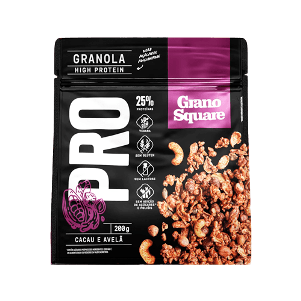 A Granola Pro Cacau e Avelã GranoSquare foi desenvolvida para facilitar o consumo proteico de forma prática e deliciosa, a qualquer hora do dia. Com 25% de proteínas vegetais, a Granola Pro Cacau e Avelã GranoSquare oferece uma combinação irresistível de sabor, crocância e equilíbrio nutricional. Essa granola proteica proporciona um aporte proteico vegano de alta qualidade, ideal para quem busca manter uma dieta balanceada e saborosa. Ingredientes: Mix de sementes (girassol, abóbora, linhaça e chia), mix de nuts (castanha de caju, avelã e amendoim), fibra de tapioca, flocos de milho não transgênico, proteína texturizada de ervilha, pasta de amendoim, flocos de arroz, crispie de quinoa, proteína de arroz, cacau em pó, leite de coco em pó, extrato de alecrim, edulcorante natural stévia e aromas naturais. NÃO CONTÉM GLÚTEN.CONTÉM CASTANHA DE CAJU, AVELÃ E AMENDOIM E SEU DERIVADO. PODE CONTER CASTANHA DO PARÁ, AMÊNDOA E NOZES. Sobre a marca: GranoSquare foi criada com muito amor e carinho desde o início.Uma receita única, desenvolvida dentro da nossa casa para agradar à um marido devorador de granolas!O resultado foi tão surpreendente e delicioso que logo caiu no gosto de toda família e dos amigos e hoje, 9 anos depois, no de milhares de brasileiros que a devoram diariamente.Nos demos conta de que mudamos o mercado nacional de granolas. Nos tornamos referência e conseguimos inspirar até grandes marcas que já existem há muito tempo.Isso é incrível e nos deixa muito realizados!Temos paixão por GRANOLA por ser um alimento nutritivo, saudável, versátil, prático, que a gente torna extremamente saboroso e faz todo mundo querer comer todos dias em diversos momentos!Da nossa casa, para sua casa e para o mundo! Essa é nossa história, esse é o nosso sonho! Sobre a Boomi: A Boomi é  um mercado online com produtos saudáveis e sustentáveis, que fazem bem à saúde e ao planeta. São mais de 3.500 produtos de 150 pequenas marcas para você!Nascemos pequenos, mas com um propósito gigante: conectar pessoas a produtos acessíveis que tragam benefícios para a saúde, para o planeta e para a sociedade. Para isso, buscamos ofertar produtos de pequenos agricultores e pequenas empresas em um mundo cada vez mais veloz e que busca mais produtividade. Vamos sempre buscar levar o melhor para você!Nosso propósito é conectar alimentos saudáveis e produtos naturais e sustentáveis a pessoas preocupadas com a sua saúde e com a saúde do planeta. Com preço justo, comodidade e informações confiáveis.Curadoria: Nossos produtos são criteriosamente validados pela nossa curadoria de produtos saudáveis, que busca produtores e empresas que compartilham do nosso alto padrão de qualidade. Da enorme lista de ingredientes banidos à preocupação do bem estar animal, desde o primeiro dia seguimos fieis aos nossos valores, trabalhando com transparência e práticas sustentáveis. Vendemos apenas produtos que admiramos e que nos orgulha.