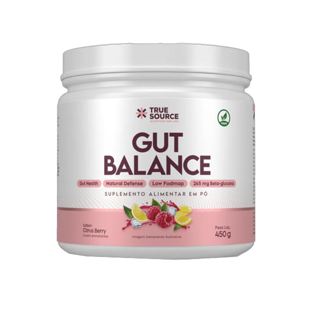 O Gut Balance Citrus Berry True Source é um suplemento desenvolvido para fortalecer a barreira intestinal, equilibrar a microbiota e promover o funcionamento ideal do sistema imunológico. Com beta-glucana e nutrientes essenciais que estimulam a resposta imune inata e adaptativa, o Gut Balance Citrus Berry True Source promove a melhora da função imunológica e também o equilíbrio da microbiota, uma vez que contém fibra prebiótica de goma acácia que favorece o crescimento de bactérias benéficas. Ingredientes: Goma acácia (acacia senegal L.), L-glutamina, glicina, L-arginina, ácido ascórbico (vitamina C), L-treonina, beta-glucana de levedura (Saccharomyces cerevisiae), N-acetil L-cisteína, bisglicinato de zinco, niacina (vitamina B3), selenometionina (selênio), riboflavina-5’-fosfato de sódio (vitamina B2), aromatizantes naturais, acidulante ácido cítrico, antiumectantes dióxido de silício e fosfato tricálcico, corantes naturais vermelho beterraba e extrato de urucum, edulcorantes glicosídeos de esteviol de Stevia rebaudiana Bertoni e taumatina. NÃO CONTÉM GLÚTEN.  Sobre a marca: Nascemos da união de um time de especialistas de peso que formularam produtos altamente eficientes e saborosos. Depois de 2 anos de pesquisas e estudos do mercado nacional e internacional, nossos médicos, nutricionistas e chefs de cozinha chegaram à fórmula perfeita. Sobre a Boomi: A Boomi é  um mercado online com produtos saudáveis e sustentáveis, que fazem bem à saúde e ao planeta. São mais de 3.500 produtos de 150 pequenas marcas para você!Nascemos pequenos, mas com um propósito gigante: conectar pessoas a produtos acessíveis que tragam benefícios para a saúde, para o planeta e para a sociedade. Para isso, buscamos ofertar produtos de pequenos agricultores e pequenas empresas em um mundo cada vez mais veloz e que busca mais produtividade. Vamos sempre buscar levar o melhor para você!Nosso propósito é conectar alimentos saudáveis e produtos naturais e sustentáveis a pessoas preocupadas com a sua saúde e com a saúde do planeta. Com preço justo, comodidade e informações confiáveis.Curadoria: Nossos produtos são criteriosamente validados pela nossa curadoria de produtos saudáveis, que busca produtores e empresas que compartilham do nosso alto padrão de qualidade. Da enorme lista de ingredientes banidos à preocupação do bem estar animal, desde o primeiro dia seguimos fieis aos nossos valores, trabalhando com transparência e práticas sustentáveis. Vendemos apenas produtos que admiramos e que nos orgulha.
