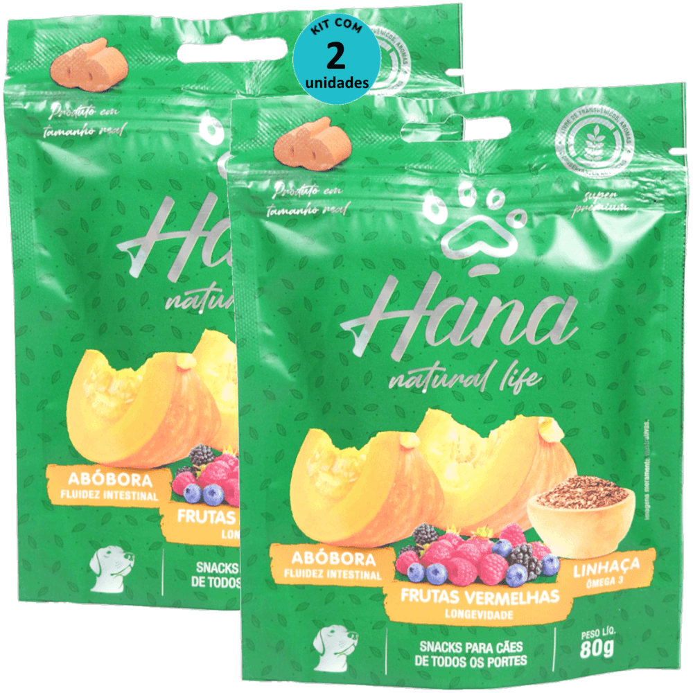 Hana Natural Life Abóbora Frutas Vermelhas Linhaça 80g Para Cães Adultos Kit C/ 2 Un