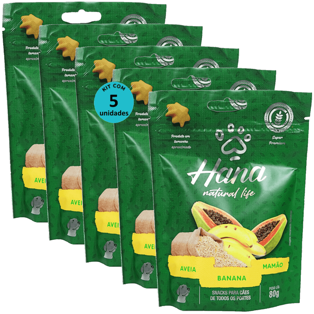 HANA NATURAL LIFE AVEIA BANANA MAMÃO 80G SNACKS PARA CÃES ADULTOS KIT C/ 5 UN - Hana Natural Life Aveia Açaí Banana 80g Snacks Para Cães Adultos Kit C/ 5 un