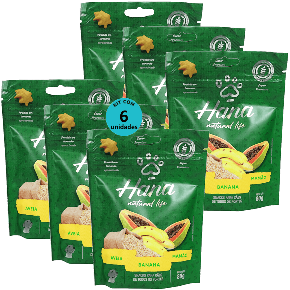 HANA NATURAL LIFE AVEIA BANANA MAMÃO 80G SNACKS PARA CÃES ADULTOS KIT C/ 6 UN - Hana Natural Life Aveia Açaí Banana 80g Snacks Para Cães Adultos Kit C/ 6 un