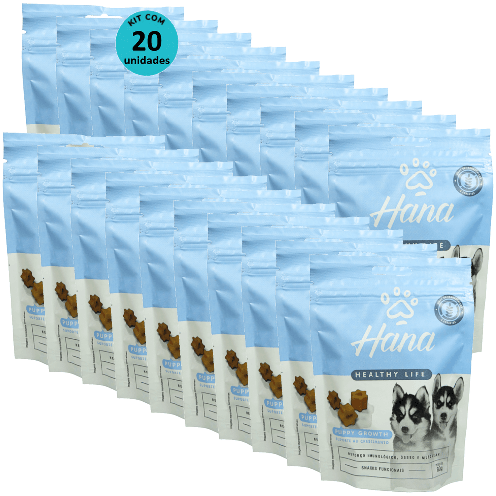 Kit 20 Hana Puppy Growth Suporte ao Crescimento 80g Snacks Para Cães Filhotes