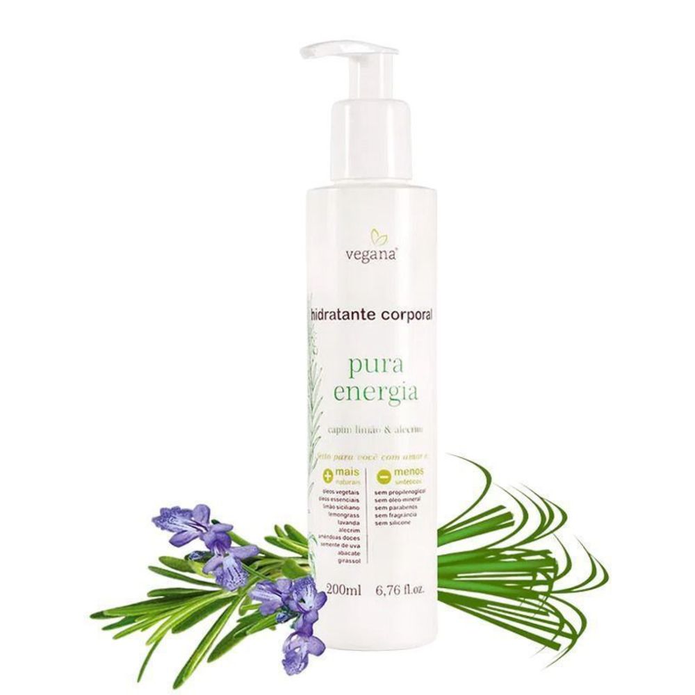O Hidratante Pura Energia garante melhor energia e disposição para seu dia, desenvolvido com óleos essenciais para proporcionar uma hidratação eficiente com toque seco, leve e sedoso. Contém óleos essenciais de Alecrim, Lemongrass, Limão Siciliano, Lavanda e óleos vegetais de Abacate, Amêndoas doces e Semente de uva, a combinação destes óleos compõe um perfume natural que traz disposição, energia, concentração nas atividades do dia a dia e uma sensação de frescor que pode durar o dia todo.Modo de Uso:Regule a válvula dosadora e aplique o Hidratante Pura Energia pelo corpo até que ele penetre totalmente na pele.Composição: Aqua, Sodium Acrylates Copolymer (And) Lecithin, Neopentyl Glycol Diheptanoate (And) Isododecane, Benzyl Alcohol (And) Salicylic Acid (And) Glycerin (And) Sorbic Acid, Caprylic/Capric Triglyceride, Helianthus annuus seed oil (óleo vegetal de girassol), Prunus amigdalus dulceis seed oil (óleo vegetal de amêndoas doces), Tocopheryl Acetate, Vitis vinifera seed oil (óleo vegetal de semente de uva), Persea gratissima fruit oil (óleo vegetal de abacate), Citrus limon peel oil (óleo essencial de limão siciliano), Lavandula angustifolia flower oil (óleo essencial de lavanda), Rosmarinus officinalis leaf oil (óleo essencial de alecrim), Cymbopogon schoenanthus leaf oil (óleo essencial de lemongrass). Contém naturalmente: Citral, Citronellol, Limonene, Farnesol, Geraniol, Linalool.