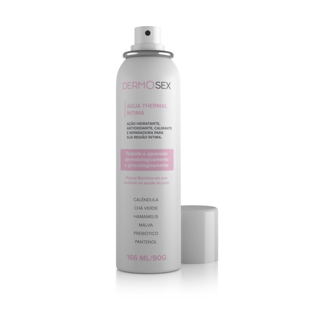 A Água Thermal Íntima Dermosex é rica em minerais, principalmente magnésio, selênio, cobre, potássio, cálcio, cobre e silício, e, por isso, pode ser utilizada para diversos fins tendo como objetivo refrescar, hidratar, acalmar e purificar a pele. Composta por diversos minerais que reforçam as defesas naturais da pele e atuam como antioxidantes, promovendo a hidratação e suavização da pele, além de conferir aspecto saudável e radiante à pele. Água Thermal Dermosex possui ação antioxidante, calmante (proporciona alívio pós-procedimentos como peeling, barbear e depilação). Refrescante, protege a pele das agressões diárias, hidrata, auxilia em casos de dermatite, psoríase, ameniza a sensação após queimaduras solares e suaviza irritações e coceiras.  Na sua região íntima, você pode aplicar a água Thermal Dermosex após a higienização e antes de dormir e também ao acordar, espalhando o produto sobre a pele de forma uniforme. A Região íntima feminina devido a ausência de luz solar e grande humidade é uma ambiente propício a proliferação de fungos e bactérias que criam coceira, desconforto e um alto índice de foliculite. Os ativos minerais e vegetais em conjunto são capazes de agir na região regenerando a pele, hidratando e diminuindo a humidade local. Água Thermal Dermosex é um tratamento que vai além da epiderme e chega até a derme com uma entrega valorosa de ativos que vão agir por mais tempo. A Água Thermal Íntima Dermosex possui biominerais que auxiliam na saúde da pele. Testado e aprovado dermatologicamente e ginecologicamente. O cuidado completo da rotina diária que sua pele merece.  PRINCIPAIS BENEFÍCIOS:Testado e aprovado dermatologicamente e ginecologicamente;Hidrata, tonifica e refresca a pele no dia a dia;Na região íntima atua regenerando a pele, hidratando e diminuindo a umidade; Tem função antioxidante, sendo perfeita para evitar o envelhecimento precoce da pele;Acalma e alivia coceiras e irritações, principalmente para quem tem algum tipo de doença ou pele sensível;Ameniza a sensação de queimaduras após exposição ao sol;Alivia irritação na pele após fazer a barba ou depilações, reduzindo vermelhidões e ajudando a fechar os poros;Refresca a pele durante a prática de exercícios físicos;Ajuda a limpar a pele e fixar a maquiagem. ANVISA: AFE 2.03.200-7 Processo: 25351.184726/2022-51 MODO DE USAR:Para aplicá-la, basta borrifar a água Thermal Dermosex com uma distância segura e deixar agir por 2 a 3 minutos. Deixe-a secar naturalmente.