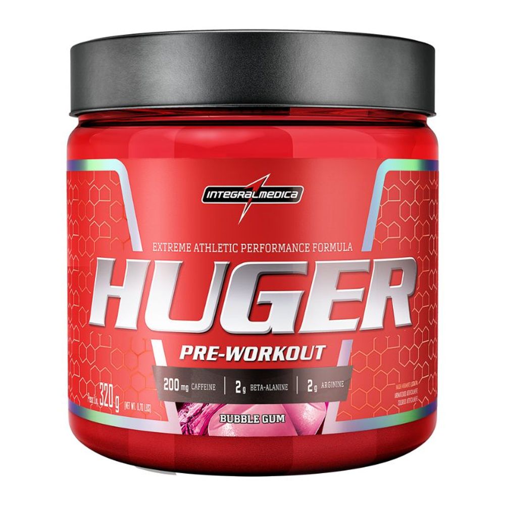 O Huguer sabor huger Bubble Gum da Integralmédica, é um suplemento alimentar em pó composto por beta-alanina, cafeína, arginina, tirosina, taurina e colina, que age com um pré-treino. Com sabor surpreendente e uma combinação ideal para quem busca mais disposição para a prática de atividades físicas.