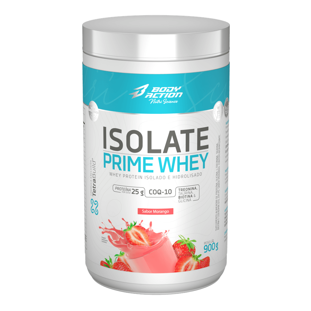 Isolate Prime Whey 900g - Sabor Morango- Body Action  Uma nutrição equilibrada tem um papel muito importante na qualidade de vida. Com o ritmo acelerado de muitas pessoas, às vezes, é muito difícil prestar atenção a todos os requisitos que o corpo precisa para estar saudável e forte. Neste sentido, os suplementos cumprem a função de complementar a alimentação e ajudam a obter as vitaminas, minerais, proteínas e outros componentes indispensáveis para o correto funcionamento do organismo.Fonte rápida de energiaA principal função das proteínas é contribuir para a regeneração muscular. É por isso que os suplementos proteicos são geralmente usados em certas circunstâncias, por exemplo, diante do aumento da intensidade do exercício, a recuperação após uma lesão ou para complementar a alimentação de pessoas veganas e vegetarianas. Alguns dos benefícios são: seu fácil consumo, seu baixo teor de açúcar, gordura e possível redução do apetite.*Este produto é um suplemento dietético, não é um medicamento. Suplementa Ante dietas insuficientes. Consulte seu médico e / ou farmacêutico.Aviso legal• Idade mínima recomendada: 19 anos.• Consumir junto com alimentos para facilitar sua assimilação.• Este produto é um suplemento dietético, não um medicamento. Suplementa dietas insuficientes. Consulte o seu médico e/ou farmacêutico.