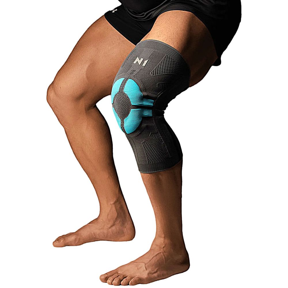 Joelheira Elástica N1 Pró Cinza com Azul - Tamanho P