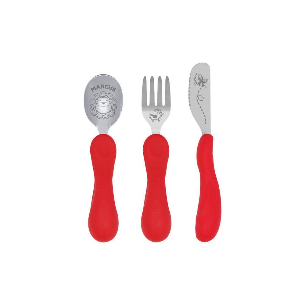 Jogo Anatômico Colher Garfo E Faca Com Inox Leão Marcus 3Pcs (Em Silicone E Inox) - Marcus & Marcus