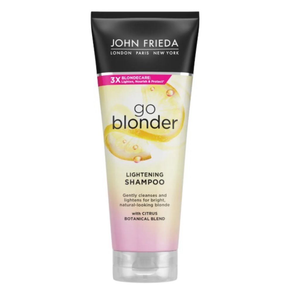 Indicado para cabelos loiros naturais, tingidos ou com luzes, o John Frieda Go Blonder é um shampoo que clareia e restaura gradualmente as fibras capilares, proporcionando um loiro mais claro, forte e natural, sem danificar o cabelo.
