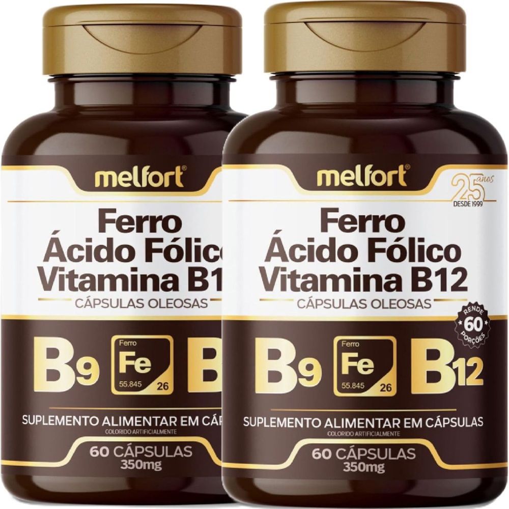 KIT 02 FERRO ACIDO FOLICO VITAMINA B12 60 CAPS 350MG MELFORT