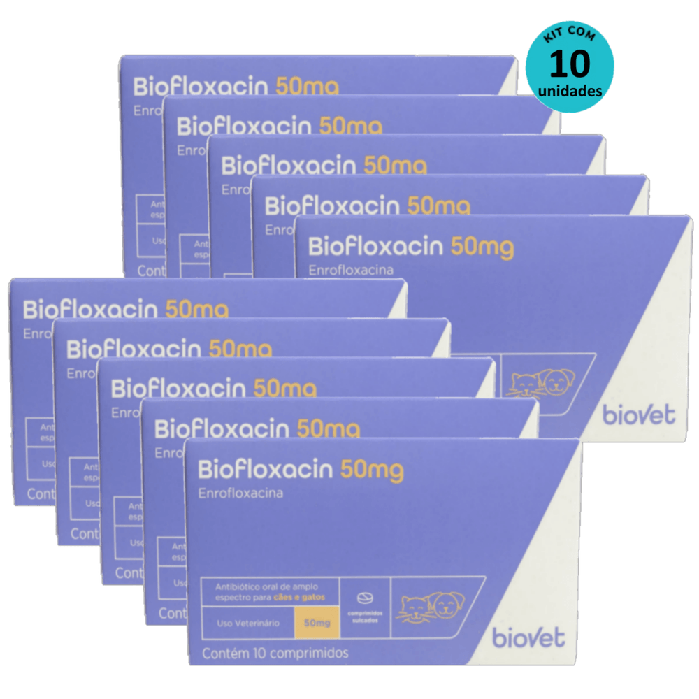 Kit 10 Biofloxacin 50mg C/ 10 Comprimidos- Biovet