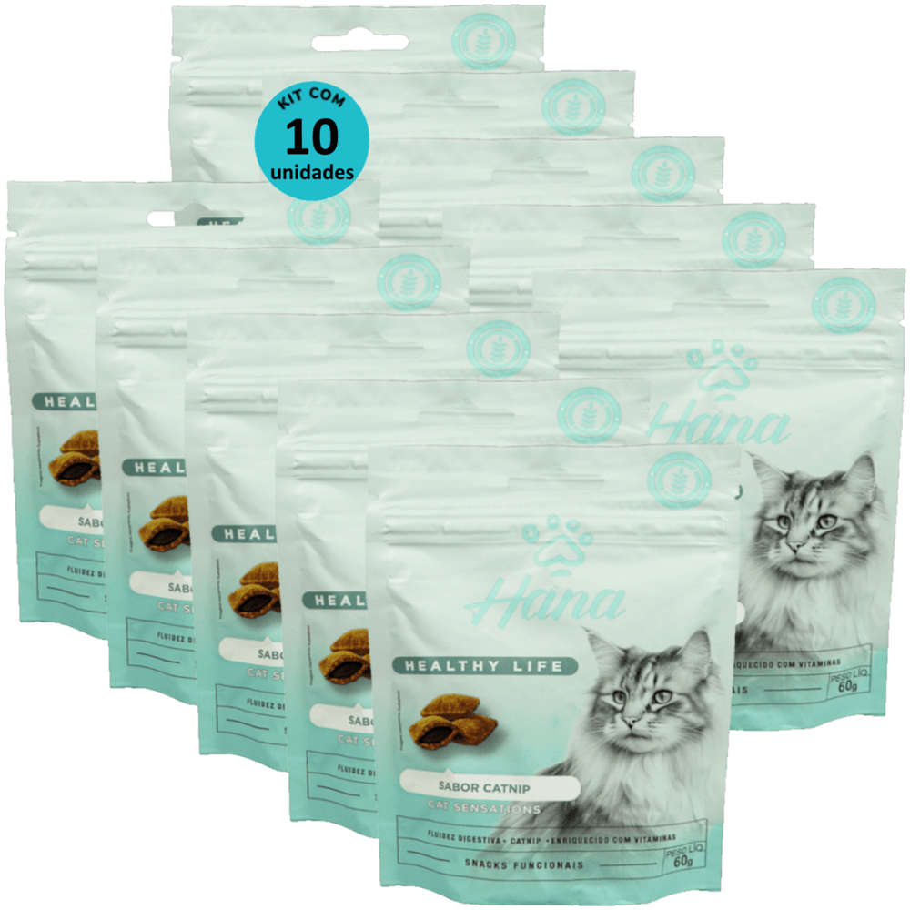 Kit 10 Snacks Hana Healthy Life Cat Sensations P/ Gatos Adultos - 60g