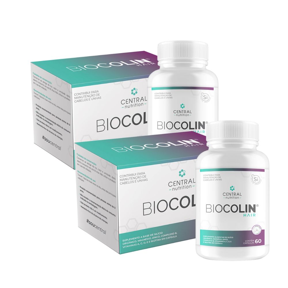 Kit 2 Biocolin Hair 500mg Silício Vitam E 60 Cap Central Nutrition Sem Sabor