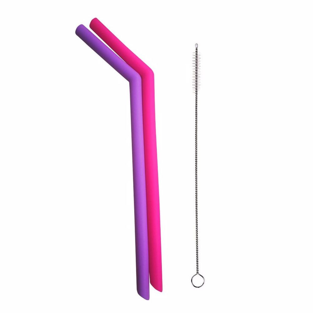 Kit 2 Canudos de Silicone + Limpador grande Rosa