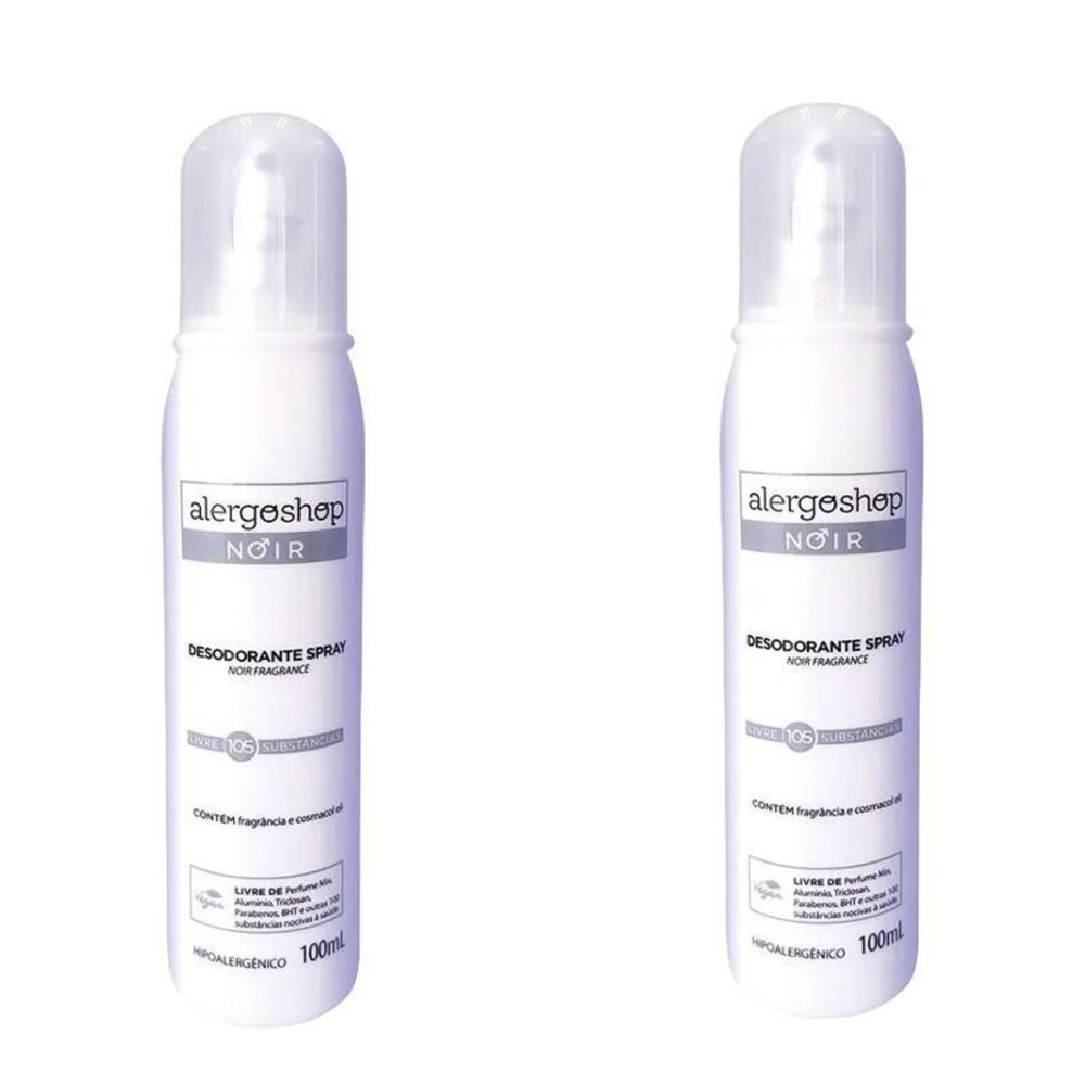 KIT 2 Desodorantes Spray Masculino Noir Hipoalergênico Alergoshop 100ml