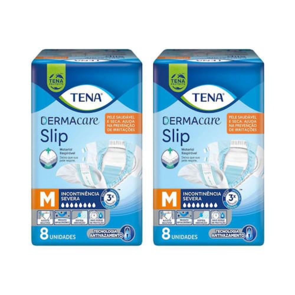 Kit 2 Fraldas Geriátrica M Tena Slip Dermacare 8 Unidades cada